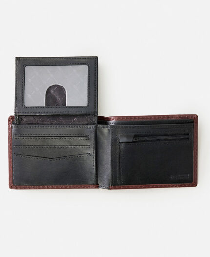 Billetera Rip Curl Quality All Day. Cuero Nobuk. Alto: 100 mm Ancho: 65 mm Profundidad: 10 mm. Ventana de identificación. Protección RFID. Múltiples ranuras para tarjetas. Moneda zip. Detalle de ribete de anillo pequeño.