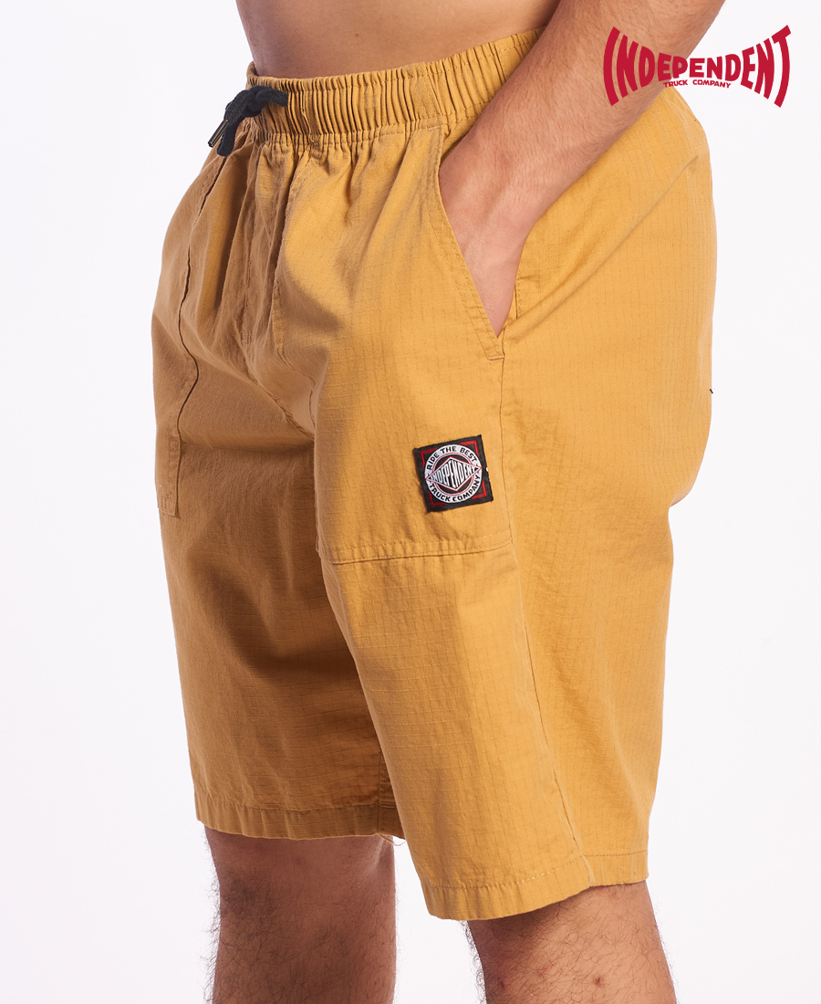 BermudaIndependet Ripstop. Ripstop 100% algodón cintura elastizada 20” con bolsillos aplicados cordón y ojales bordados a tono etiquetas marcarias.