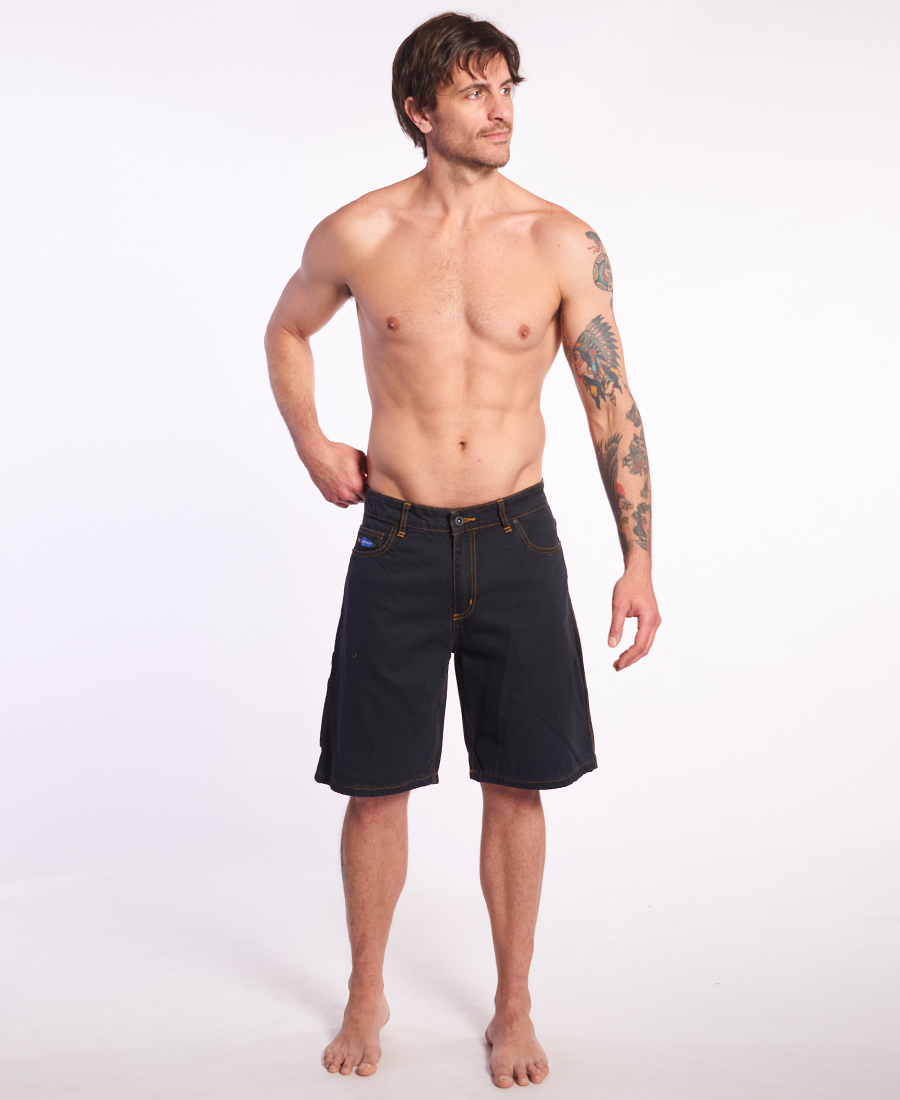 Bermuda Rip Curl Archive Black DENIM BLACK • OG fit • Largo 21” • Lavado Suavizado + desgaste • Bordado en bolsillo trasero y • bolsillo relojero • Costuras a contratono