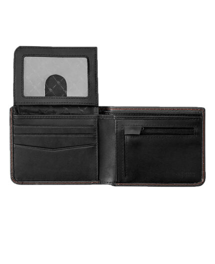 Billetera Independent Span de cuero con ranuras para tarjetas y billetes. Logo de bajo-relieve