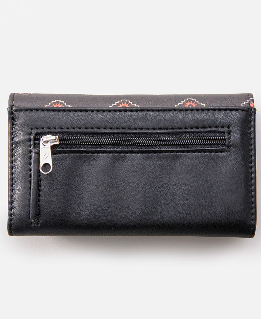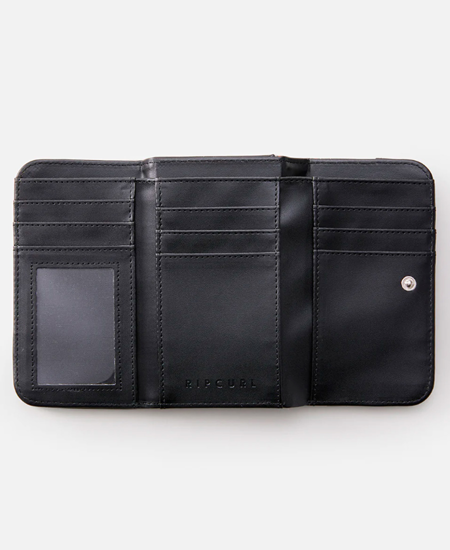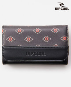 BilleteraRip Curl Mixed. PU. Cierre a presión metálico. Estampado de yardas por todas partes. Logotipo en relieve. Compartimento para monedas. Múltiples ranuras para tarjetas.