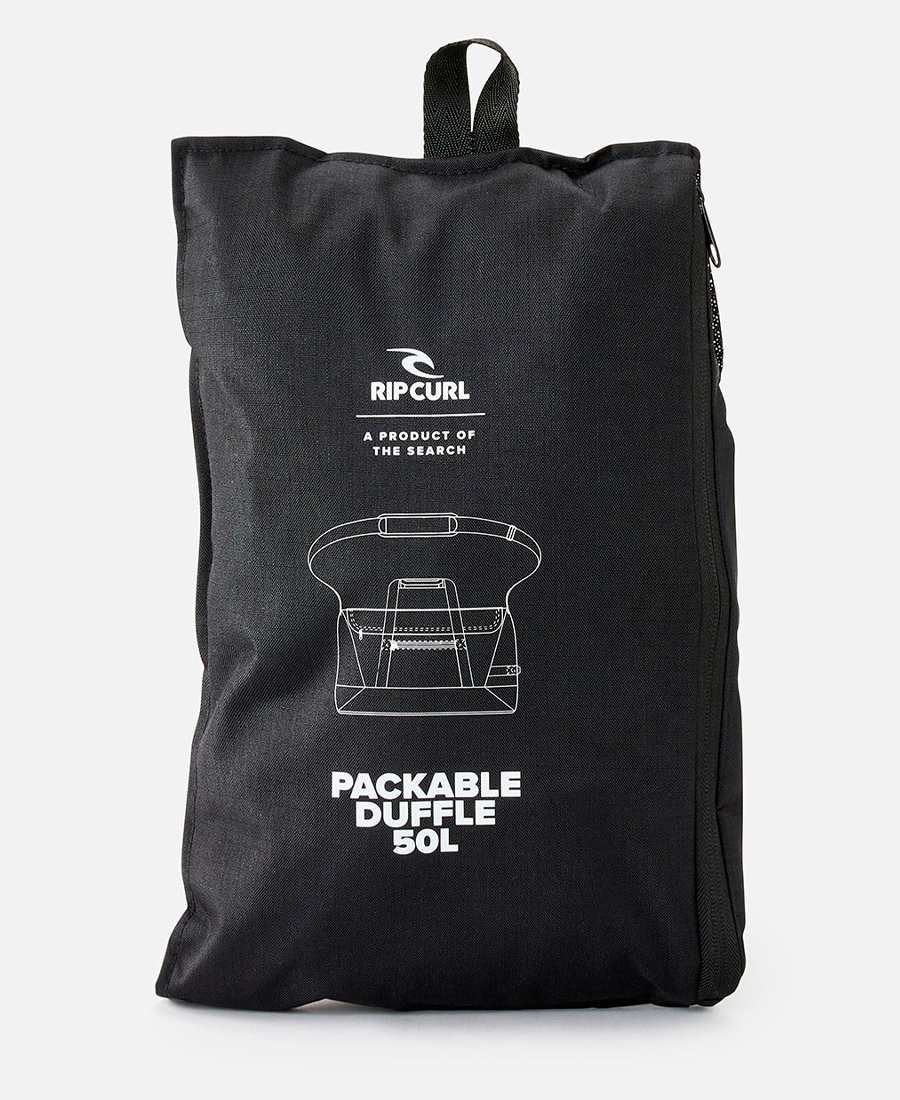 Bolso Rip Curl Duffle Packable 50L. La bolsa de viaje plegable Midnight de 50 l ofrece versatilidad y comodidad. El bolsillo frontal proporciona un fácil acceso a los artículos esenciales mientras que la correa de hombro ajustable y extraíble permite llevarla cómodamente. Cuando no se utiliza esta bolsa de viaje se puede guardar en su propio bolsillo trasero lo que ahorra espacio y facilita su almacenamiento. Ya sea que necesite una bolsa adicional para recuerdos o una bolsa de emergencia esta bolsa de viaje plegable es una solución práctica.