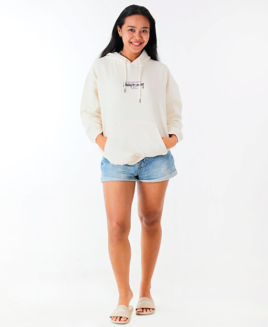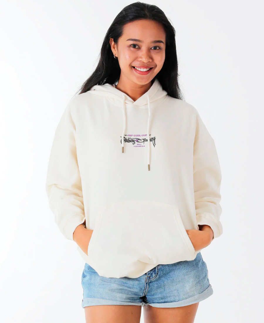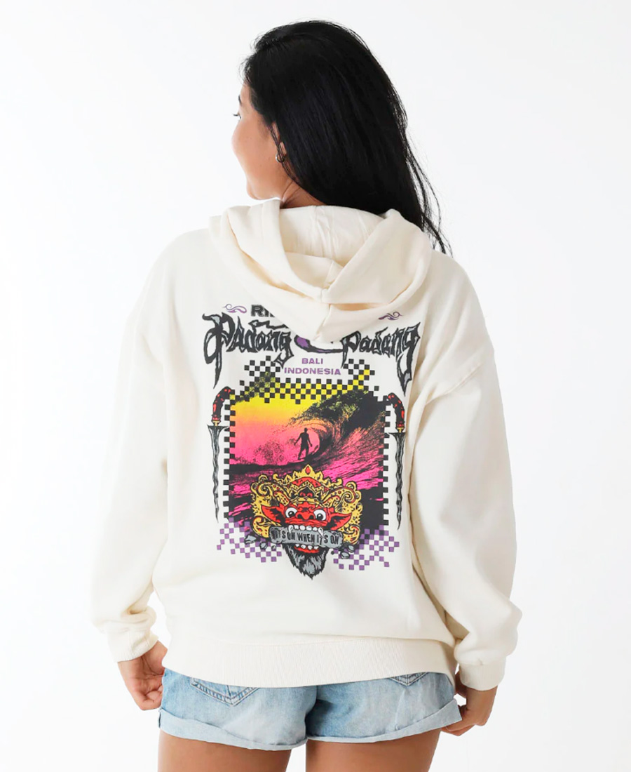 Buzo Rip Curl Padang-Padang 25 Heritage. Algodón Poly Fleece 360G Melocotón. Ajuste clásico. Impresión delantera y trasera. Etiqueta interior del cuello. Etiqueta de bandera tejida. 70% Algodón 30% Poliéster.