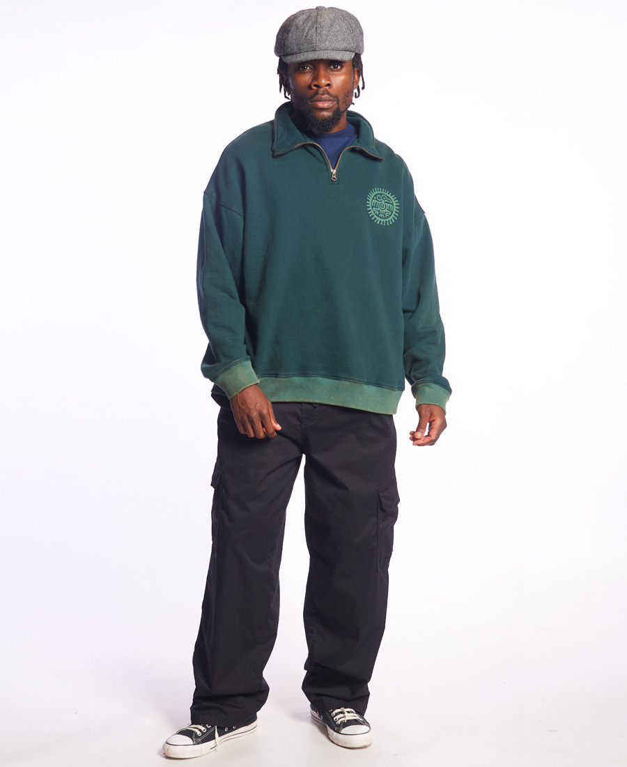 Buzo Y Tú Quique? 1/2 Zip University FRISA. 50% ALGODON 50% POLIESTER. • Relax fit. • Etiqueta de marca y talle. • Estampa serigrafica. • Lavado process. • Grifa de marca