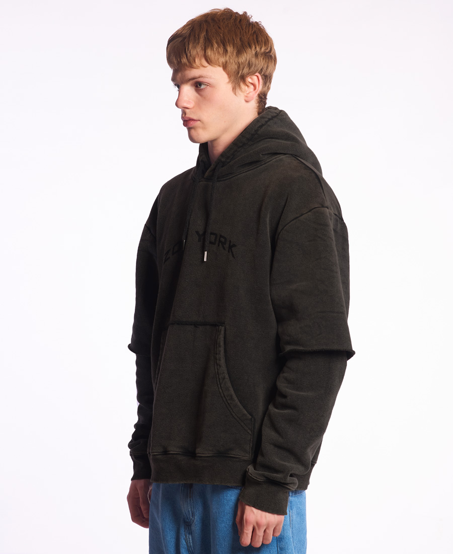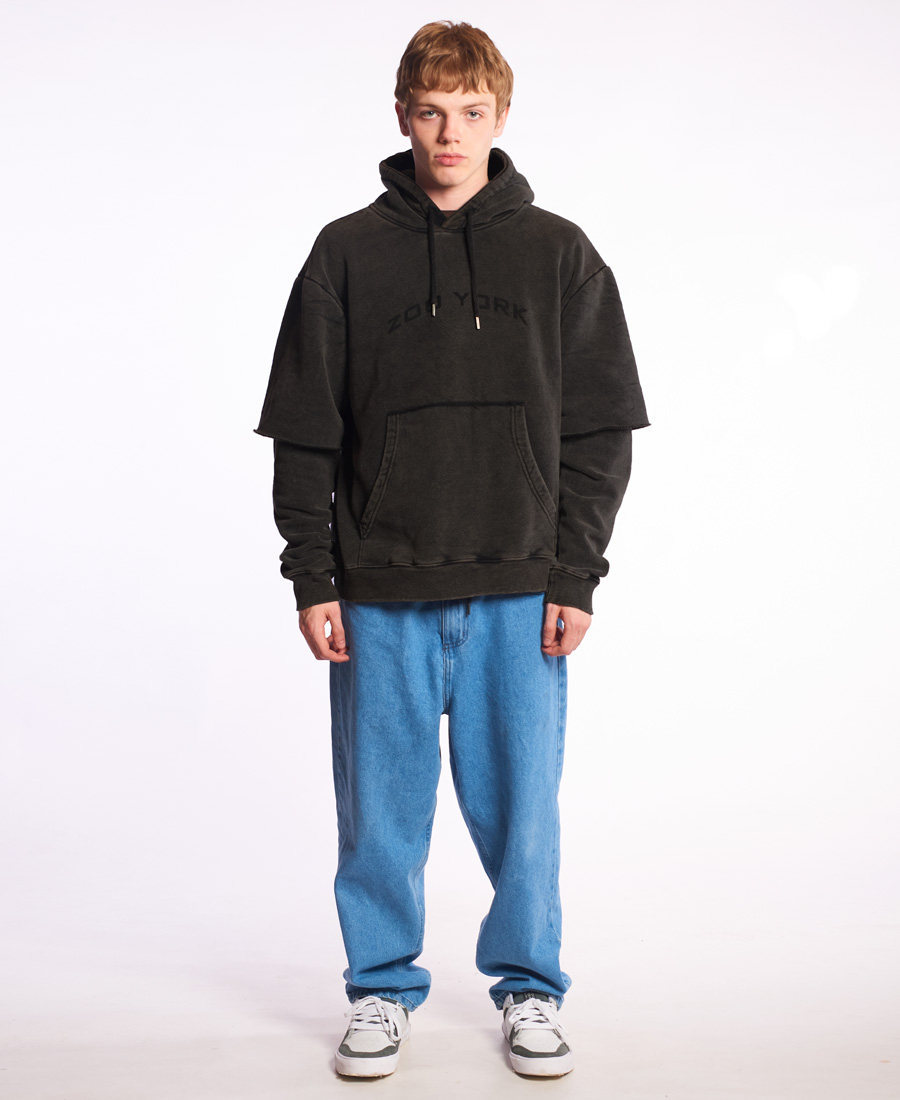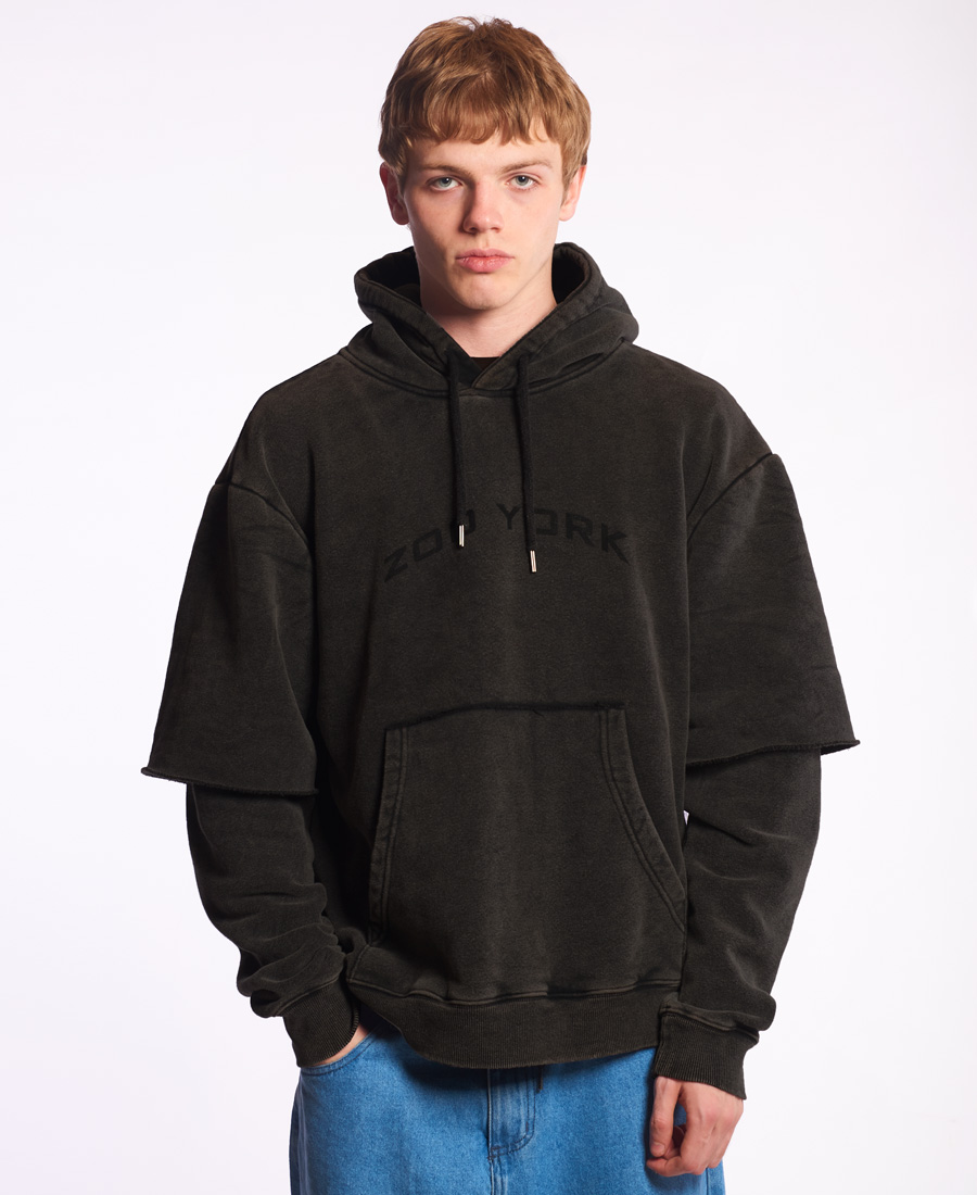 BuzoZoo York Hood Acid Boxyde frisa invisible liviana Boxy Fit. Lavado Acid Estampa por corrosion en frente. Doble manga