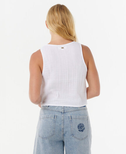 Cami Rip Curl Knit Oceanic. TOP TEJIDO. Top crop. Textura crochet calado. Escote en V. Chapita de marca metálica. Multietiquetas 100% algodón.
