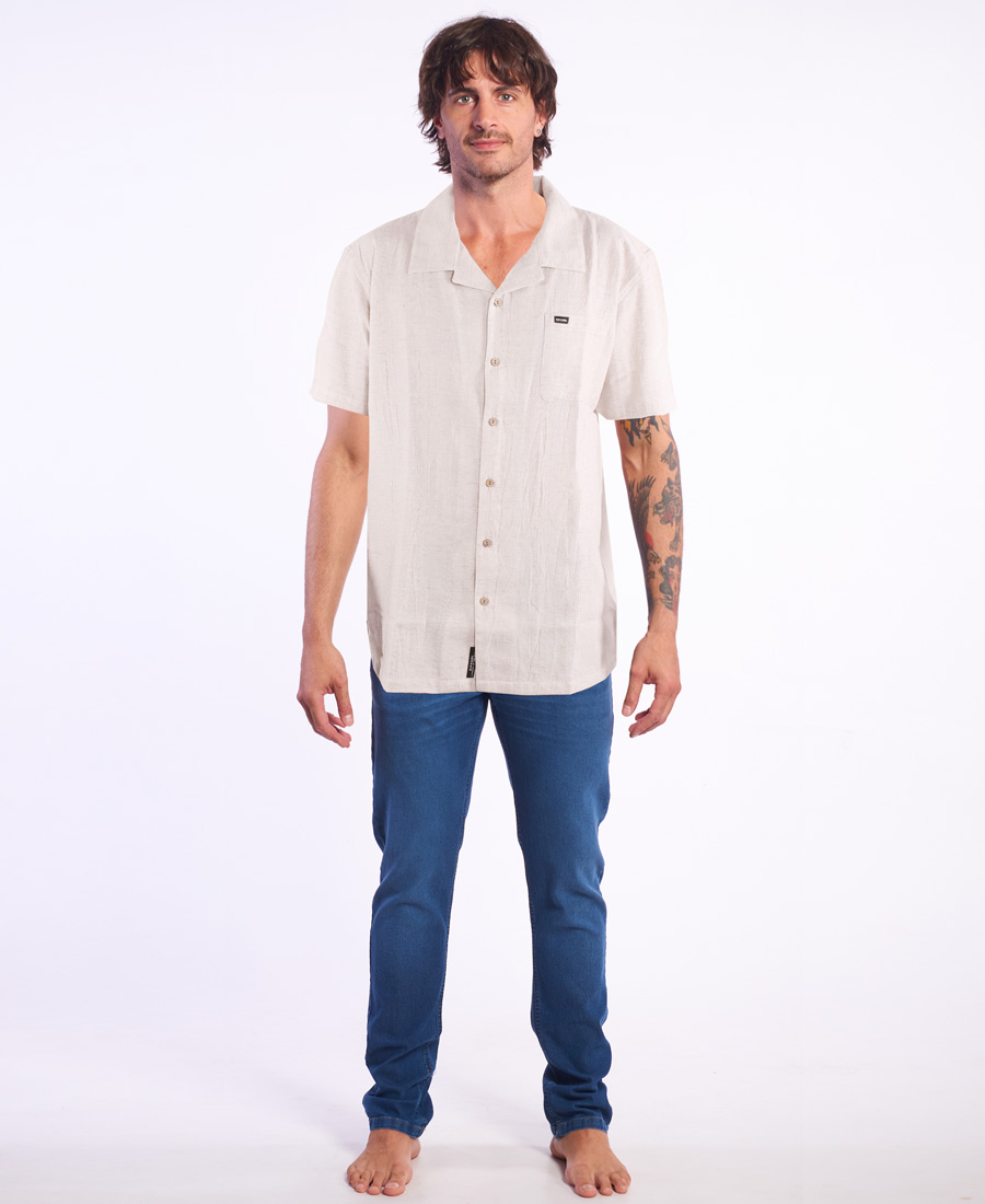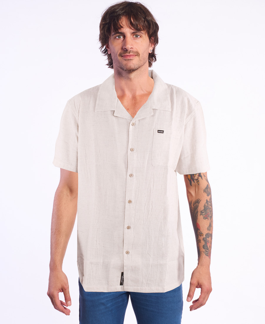 Camisa Rip Curl Hawaii Dobby. TEJIDO TEJIDO 17042-R. REGULAR FIT. Multietiquetas. Botones de Coco. Bolsillo Frontal. Lavado enzimatico siliconado. 100% Algodon.