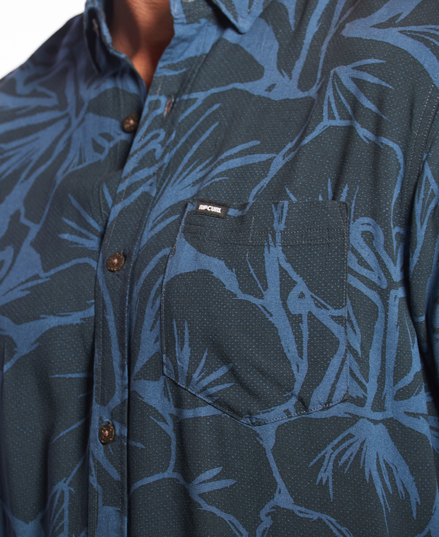 Camisa Rip Curl Mod Tropics.FIBRANA. REGULAR FIT. Full print. Multietiquetas. Botones de coco. Bolsillo frontal plaquet. 100% viscosa.