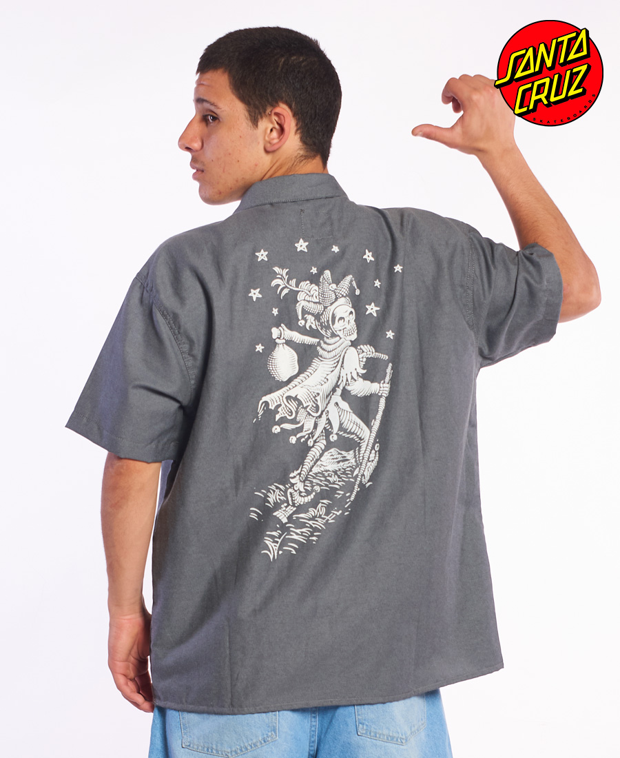 Camisa Santa Cruz Delfino Tarot 65% algodón 35% poliester gabardina espiga assorted con cierre metálico estampa en frente y espalda solapa de cuello ancho oversize fit etiquetas marcarias
