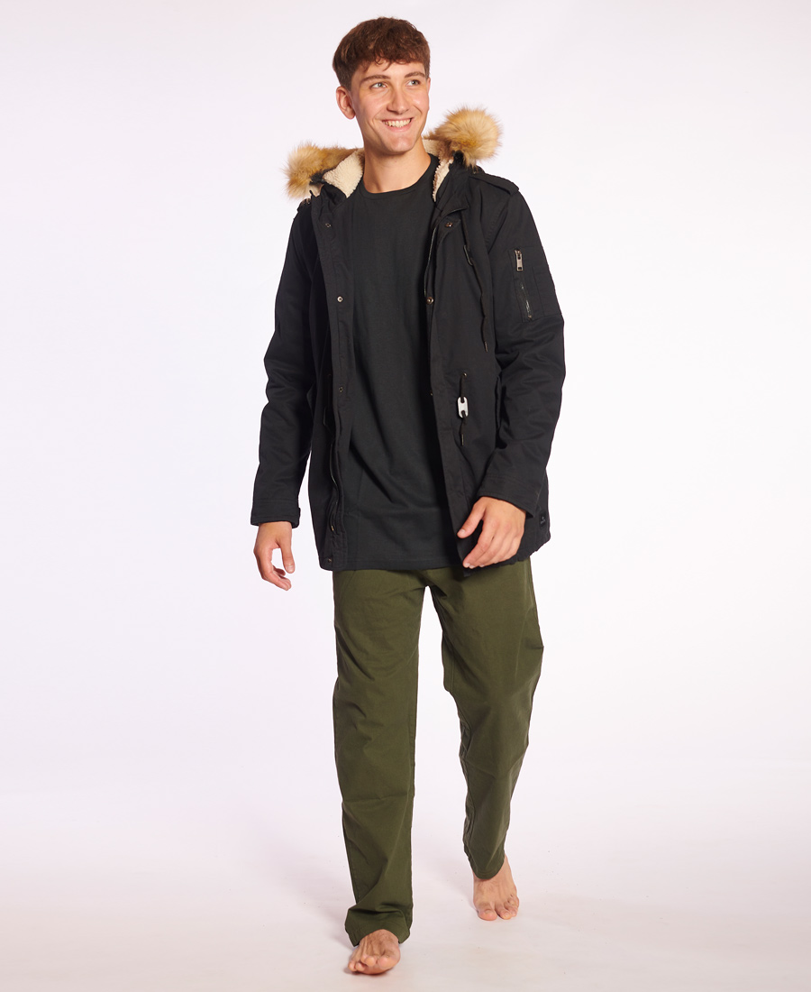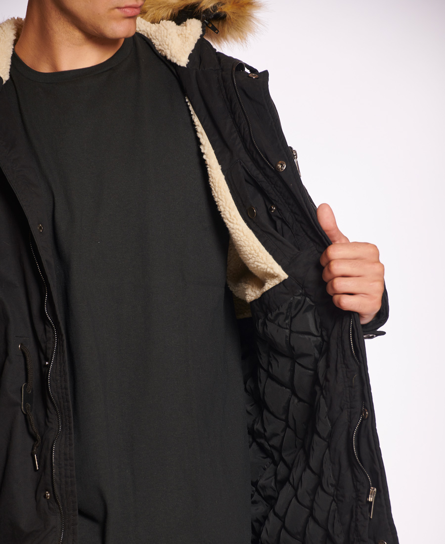 Campera Rip Curl Parka.Microfibra twill.Parka larga con inerior en corderito en medio torso piel sintetica desmotable en capucha.Interior de capucha con corderito.Multietiquetas. 100% algodón (capucha No desmontable)