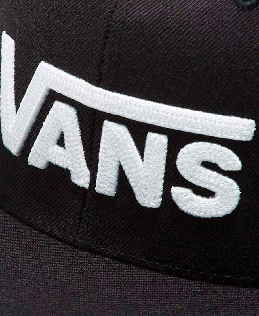 Cap Vans Drop V.Estructura de 5 paneles y corona media. Visera ligeramente curvada hacia el rostro para un ajuste clásico. Bordado directo en el panel delantero. Cierre ajustable con botón a presión para amoldarla de forma personalizada. Etiqueta de Vans en el cierre de botón a presión trasero. Parte delantera: 100% algodón. Parte trasera: 100% poliéster. Forro 100% poliéster salvo elementos decorativos.