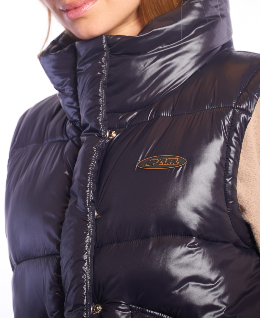 Chaleco Rip Curl Desmo Imp.NYLON PU COATING. Relaxed fit. Puffer con capucha desmontable. Bolsillo delantero con cierre. Relleno acolchado. Cierre Frontal. Multietiquetas. 100 % Nylon.