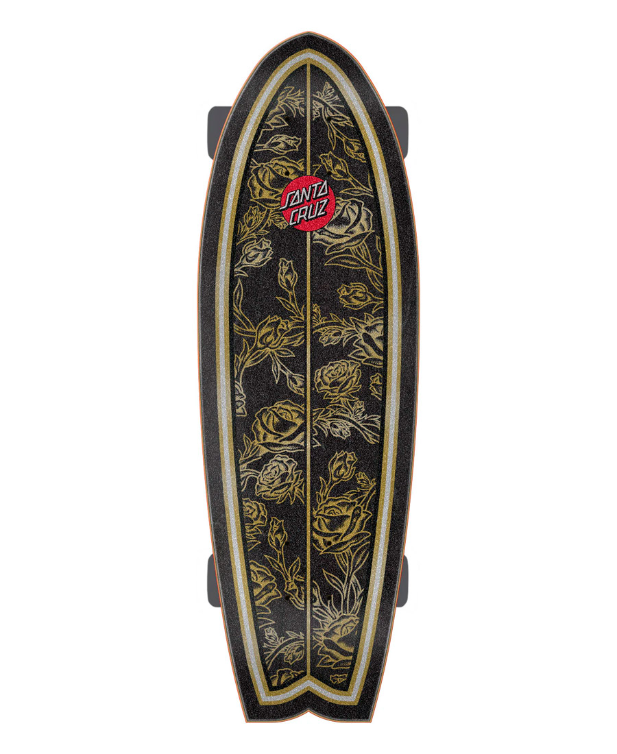 Santa Cruz Entangled Dot Shark cruiser que presenta una nueva forma de tiburón con brillo puntual y arte gráfico metálico. Esta nueva forma de tiburón es más fácil de manejar gira sin esfuerzo y está más cerca del suelo para empujarlo fácilmente. Con una construcción de 7 capas Cruz Missile II cóncavo para una conducción súper cómoda ejes Bullet Scorpion de 7 3/4″ nuevos y ruedas OJ Super Juice de 55 mm y 78a.