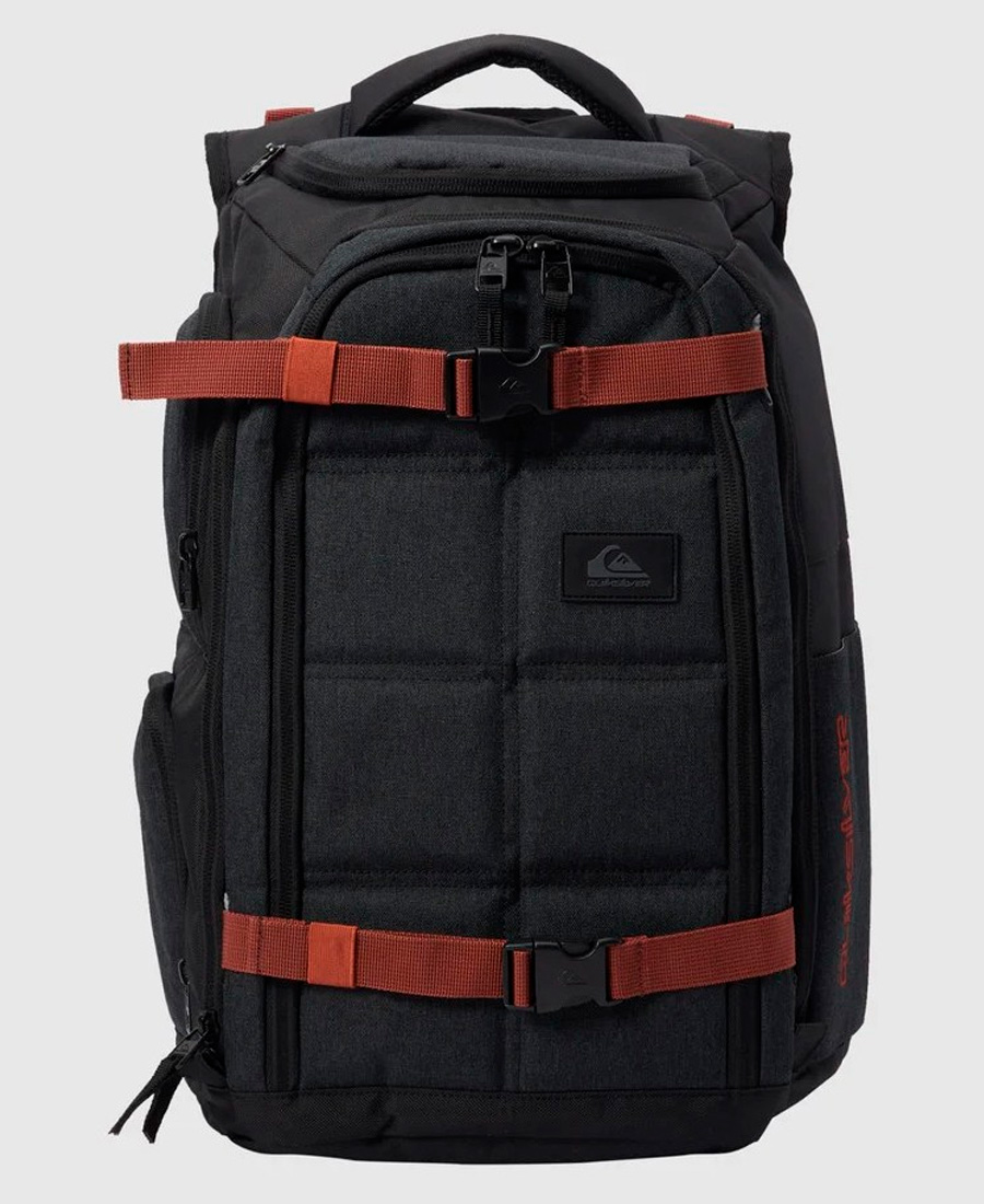 Mochila Quiksilver Grenade. Mochila para surf. Dobles compartimentos principales. Compartimiento trasero con cierre para laptop. Multiples bolsillos laterales. 1 bolsillo superior. Correas ergonómicas para hombro. Panel trasero acolchado. Correas para skate / puerto de musica. Dimensiones: 47 x 34 x 20 cm. Volumen: 32L. 100% poliéster reciclado.