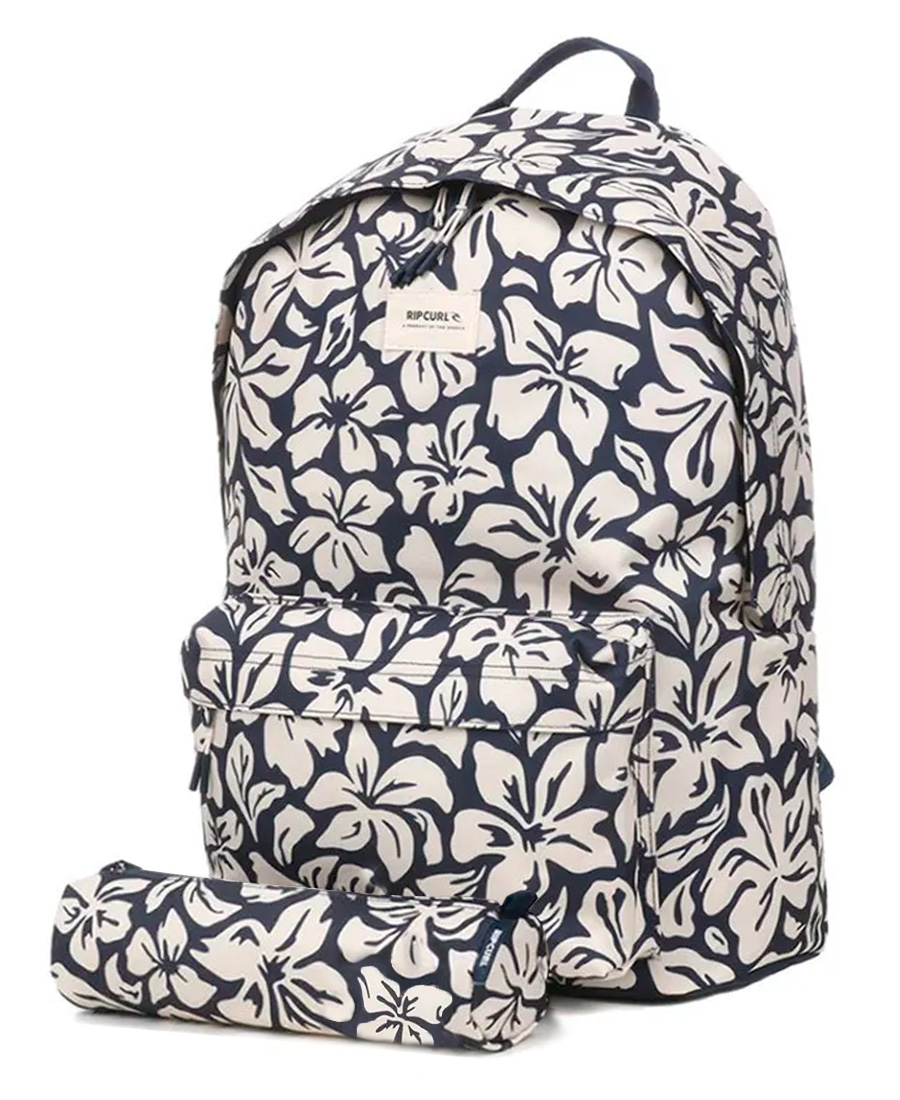 Mochila Rip Curl Dome 18L. Un modelo ligero con dos compartimentos con cremallera. Ideal para primaria y secundaria. Compartimento con cremallera. Correas de hombro acolchadas y ajustables. Compartimentos A4. Bolsillo frontal con cremallera. Insignia Rip Curl. Dimensiones: 42 cm (alto) x 29 cm (ancho) x 15 cm (profundidad). Capacidad 18L.