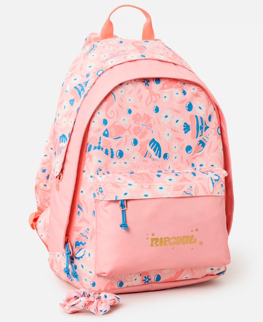 Mochila Rip Curl Double Dome 24L. Poliester reciclado. Bolsillo delantero. Insignia. Compartimento con cremallera doble. Correas para los hombros acolchadas y ajustables. Formato A4. Scrunchie para el pelo a juego. Compatible con computadora de 13”. Ajustable.
