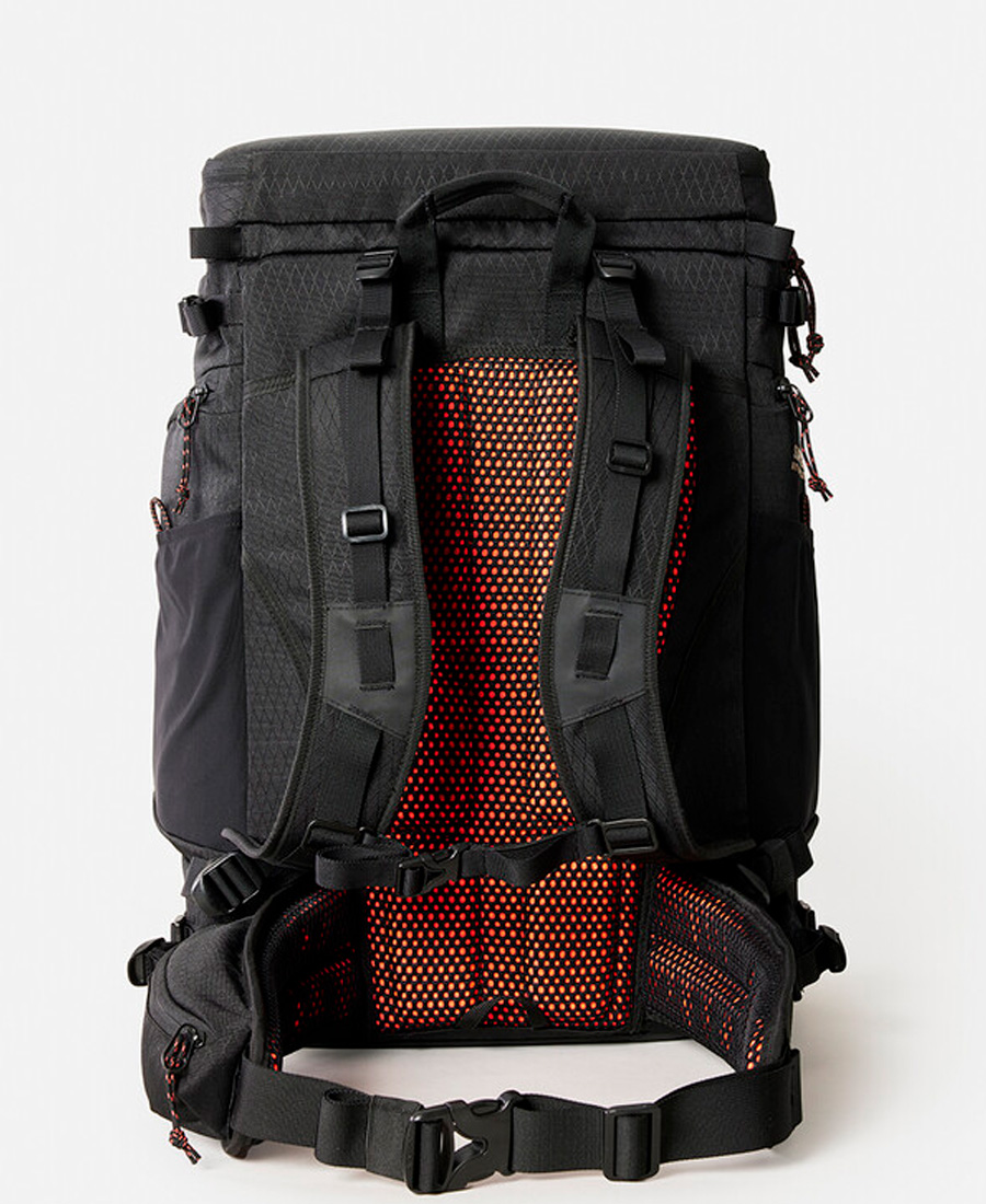 Incluye un sistema de arnés ajustable con correas acolchadas para los hombros y un panel trasero ergonómico y respirable. El sistema de arnés y el cinturón lumbar brindan un ajuste personalizado para un uso prolongado y cómodo en cualquier aventura de surf.