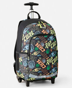 Mochila Rip Curl Wheel Ozone 30L.POLIÉSTER RECICLADO. Alto: 490 mm Ancho: 320 mm Fondo: 220 mm. Sección para portátil. Insignia tejida. Asa telescópica. Ruedas para patines en línea. Amplia sección principal. Múltiples bolsillos organizadores y utilitarios. Bolsillo para botella. Llavero para tabla de surf.