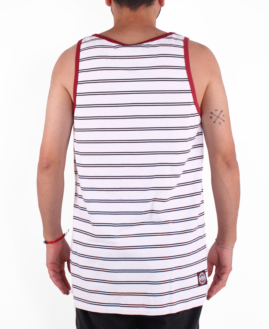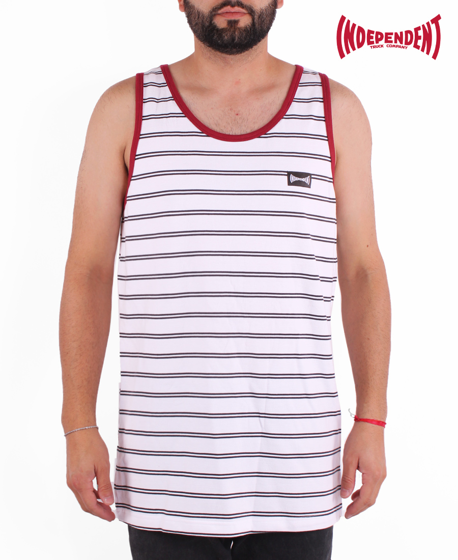 Musculosa Independent Striped piqué rayado 100% algodón loose fit con bordado frontal cuello a contratono de 3cm etiquetas marcarias.