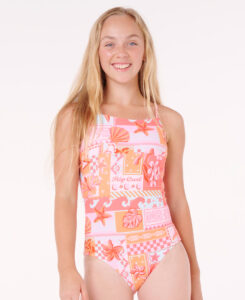 One Piece Rip Curl Paradise Club.MORLEY FULLPRINT. GOOD SUPPORT / CHEEKY COVERAGE. Enteriza. Top breteles regulables. Bordado delantero. Forreria al tono. Chapita logo RC. 95% poliamida 5% lycra.