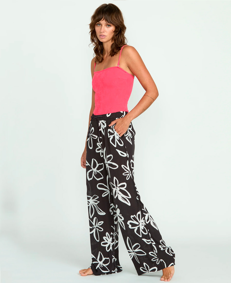 Pantalón Volcom Gotta B U Boo.Loose Fit. Wide leg. Vivo blanco en unión latera. Chapita Volcom en espalda. Inseam 29”. Cintura con elástico con cordón para ajustar. Bolsillos delanteros. Bambula / 100% viscosa.