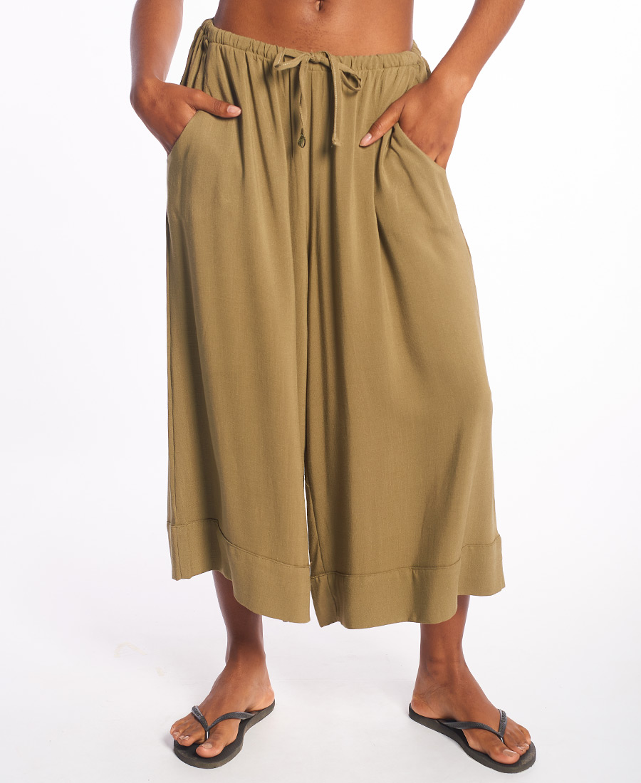 Pantalón Y Tu Quique? Midi Plain.LINO RAYON. 100% RAYON. Cintura elastizada. Cordón en tela base. Midi Fit.