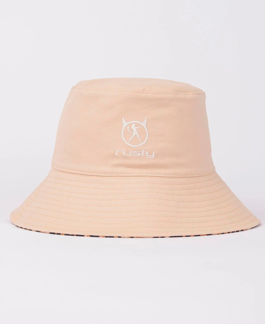 Piluso Rusty Lennie Leopard reversible con estampado oxidado personalizado y logotipos bordados. Lona 100 % algodón.