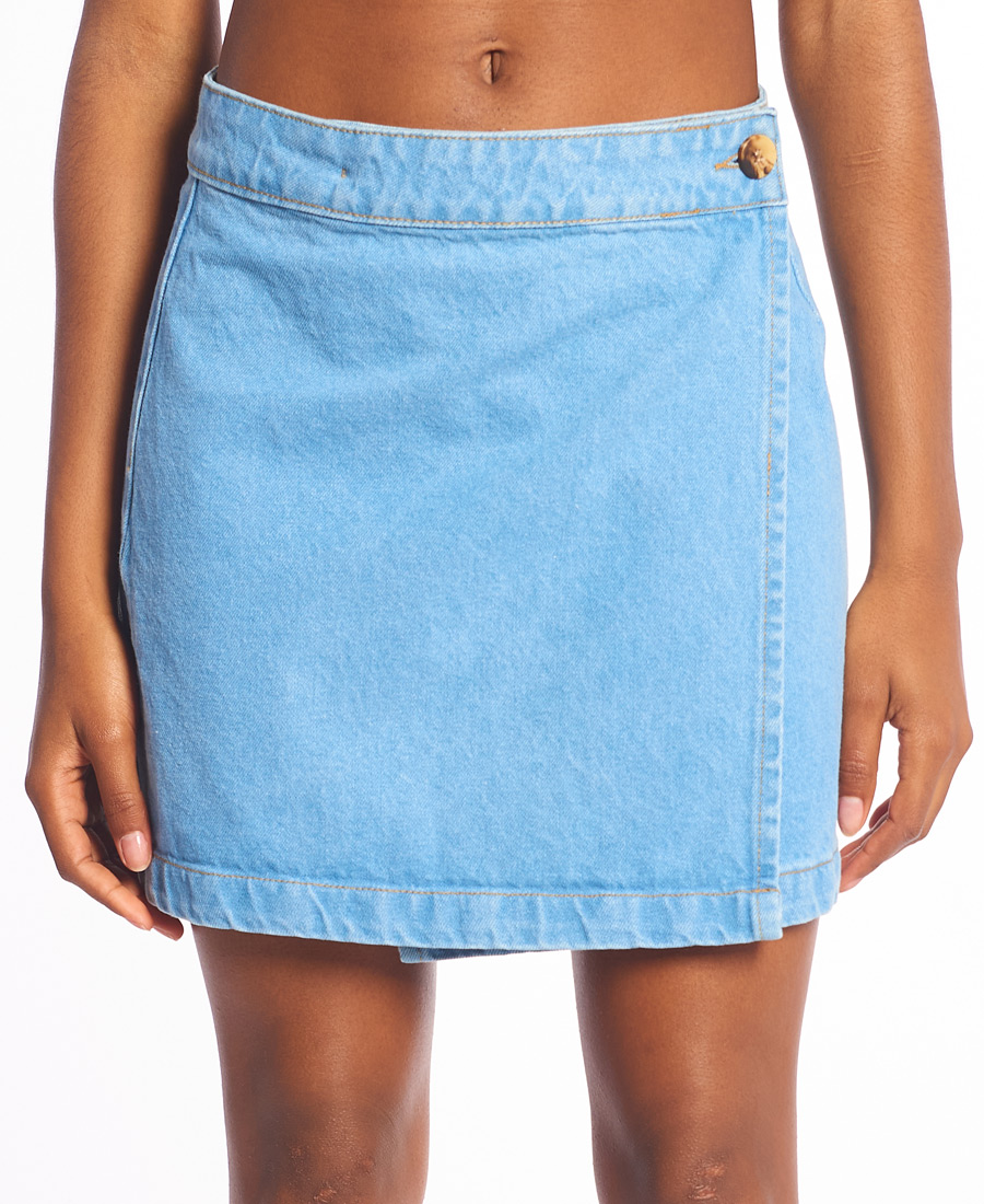 Pollera Y tú Quique? Denim Button cruzada.DENIM 10 OZ 100% Algodon. Lavado Stone Wash. Badana de marca. MINI FIT.