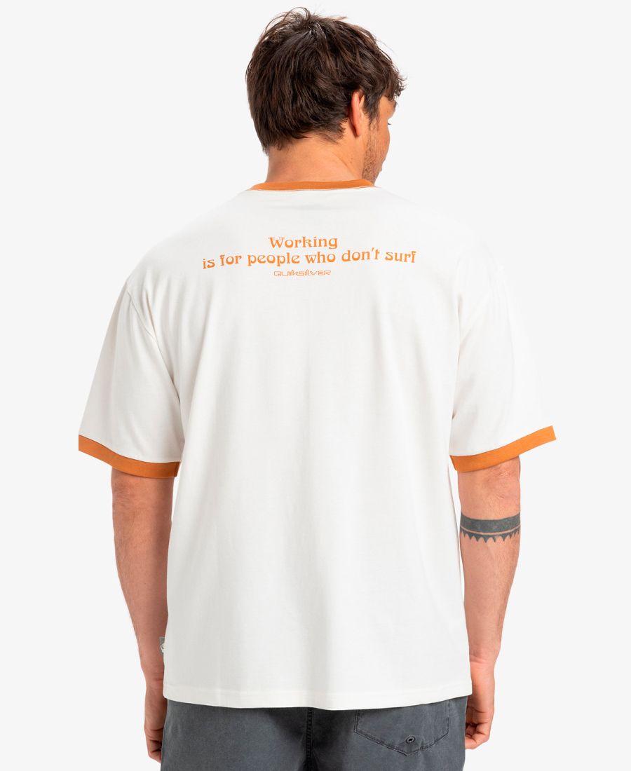 Remera Ticket To The Beach Ringer. Manga corta. Tejido: Algodón orgánico 180g. Fit: Oversized. Arte en pecho y espalda. Cuello y collareta de mangas a contratono. Etiqueta tejida de Quiksilver en la costura lateral. 100% algodón orgánico.