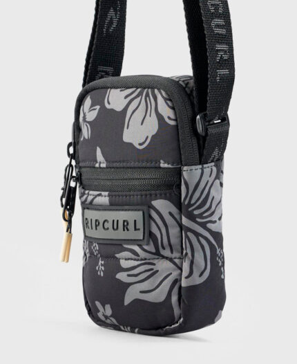 Riñonera Rip Curl Wave Shapers. RePET® 600D Recycled polyester. Adjustable. H:110mm W:220mm D:50mm. Nylon zipper closure. Logo flag. All over yardage print. Adjustable waist strap. Single compartment.