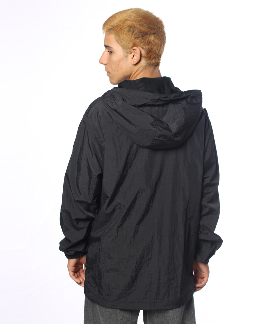 Anorak de taslom 100% nylon estampa transfer en espalda y delantero bolsillos en recortes delanteros capucha con cordones marcarios.
