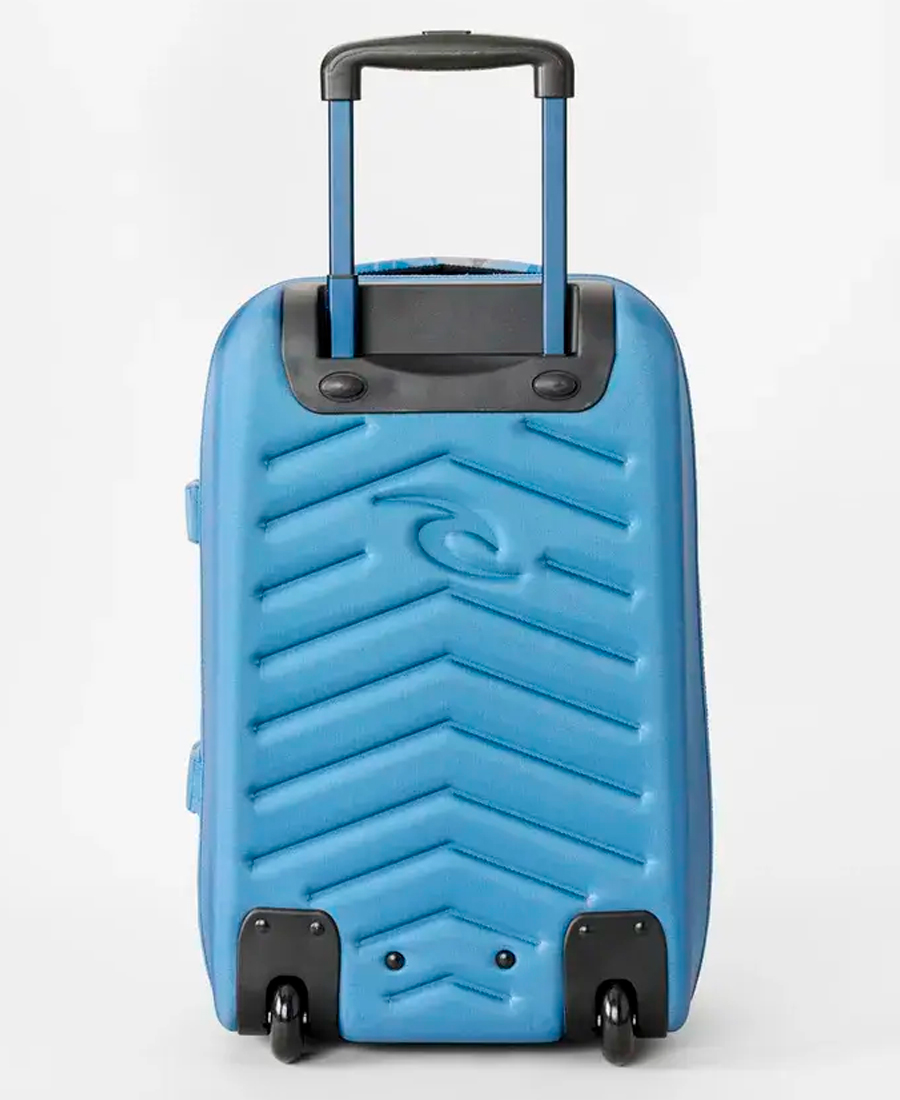 Valija Rip Curl F-Light 45L. POLIÉSTER RECICLADO Cierre con cremallera. Compartimento para portátil. Base de EVA moldeada por compresión. Correas de compresión externas. Asa telescópica. Ruedas de patines en línea. Cremalleras bloqueables. Funda especialmente diseñada para el accesorio AirTag (AirTag es una marca registrada de Apple Inc).