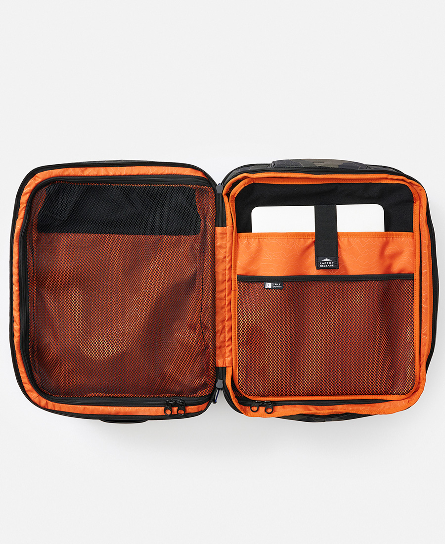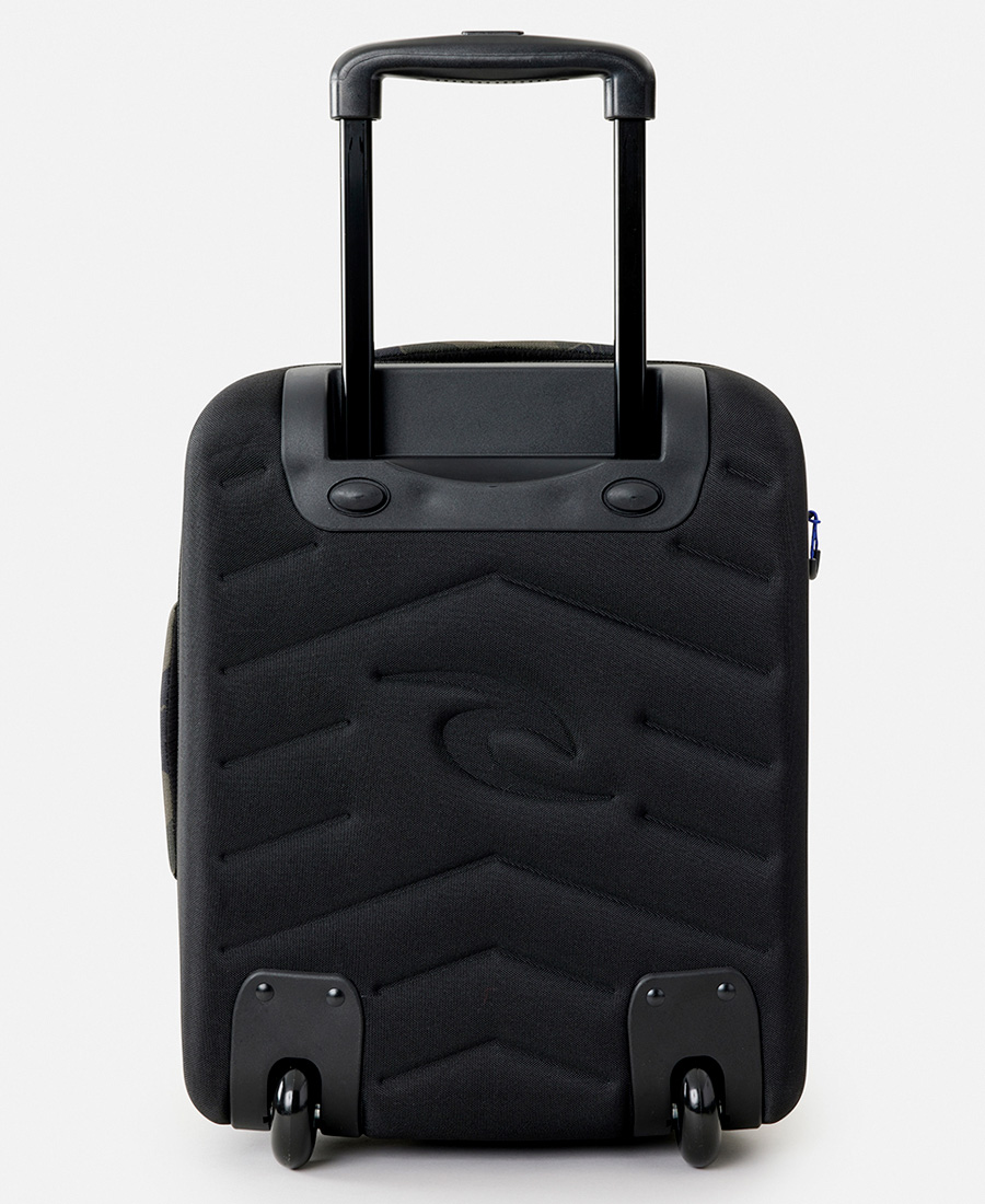 Valija Rip CurlWheel Cabin. Poliester reciclado. Sección para notebook. Base de EVA moldeada por compresión. Autoestable. Asa telescópica. Ruedas de patines en línea. Cremalleras bloqueables. Tamaño de la cabina nacional. Construcción tipo sándwich. 35 litros.