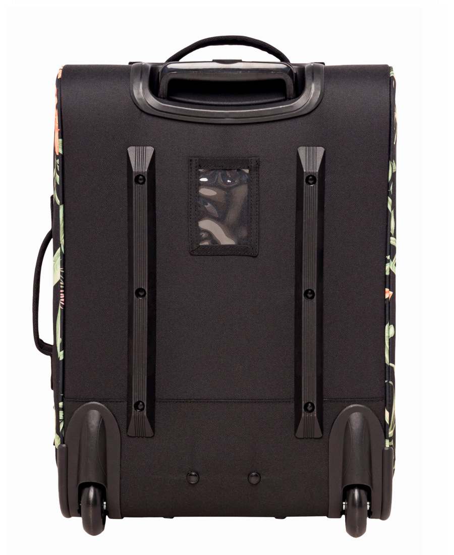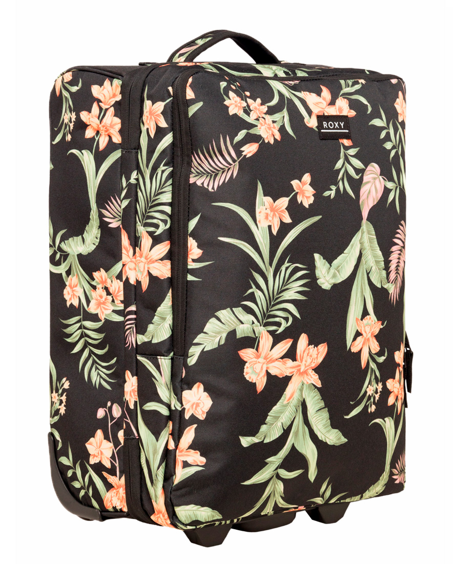 Valija Roxy Cabien Paradise 32L. Carry on. Tejido: poliéster estampado. 1 compartimento principal con cavidades con cierre en dos niveles. Compartimento acolchado para laptop. 1 bolsillo con cierre en la parte frontal con 1 bolsillo para iPad. 1 bolsillo en mesh. Asa superior lateral y frontal acolchadas. Asa telescópica retráctil. Sistema de ruedas suaves. Bolsillo con cierre en la parte frontal. Base ligera moldeada con logo Roxy. Parche de algodón ROXY. Medidas: 47 [alto] x 34 [ancho] x 20 [profundidad] cm. Volumen: 32 L de capacidad. Peso: 2 4 kg. Otras características: sistema de ruedas. Tamaño cabina. TELA: 100% Poliéster reciclado.