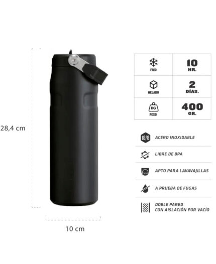 El tamaño perfecto para acompañarte en tu rutina diaria. Conserva la temperatura de tus bebidas cuenta con bocha ancha para agregar hielo y un sorbete integrado para mayor comodidad. Es compatible con el portavasos del auto.