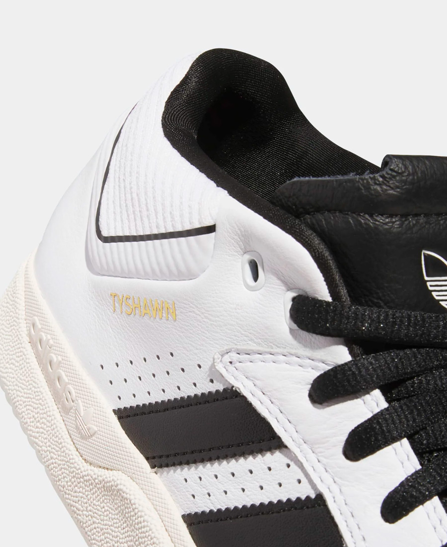 Seguridad fuerza y estilo. Nadie patina la ciudad de Nueva York como Tyshawn Jones y esa actitud inconfundible se refleja en cada aspecto de sus zapatillas exclusivas. Inspiradas en la estética del básquet y diseñadas para el skateboarding las zapatillas Tyshawn Mid lucen un cuello de espuma viscoelástica una punta reforzada plantilla Adiprene y están confeccionadas en materiales y acabados premium.