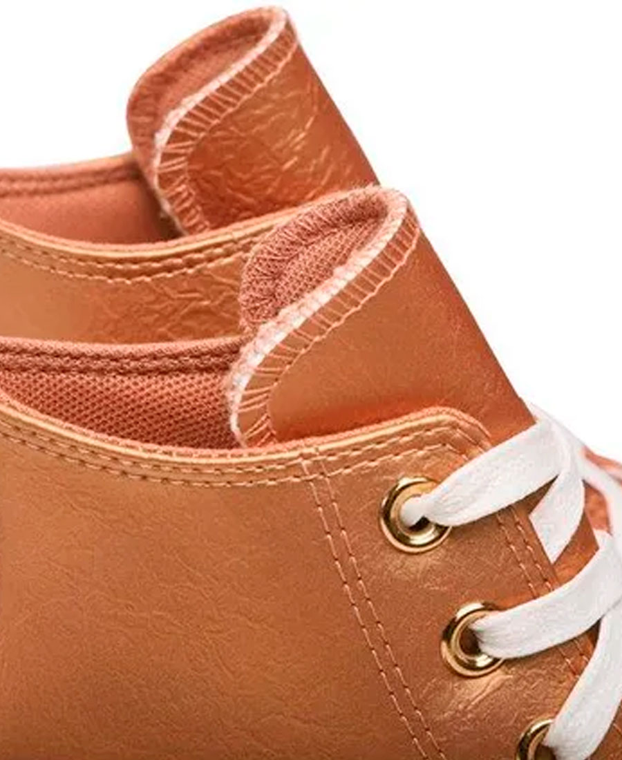 Inspiradas en las tendencias glamurosas y la naturaleza estas plataformas con relieve tienen que ver con encontrar el equilibrio. Un lienzo metálico texturizado se une a los toques de cobre para que tu estilo brille. Los detalles clásicos de Chuck Taylor se contrastan con una suela de plataforma con una postura expresiva y tracción sobresaliente.